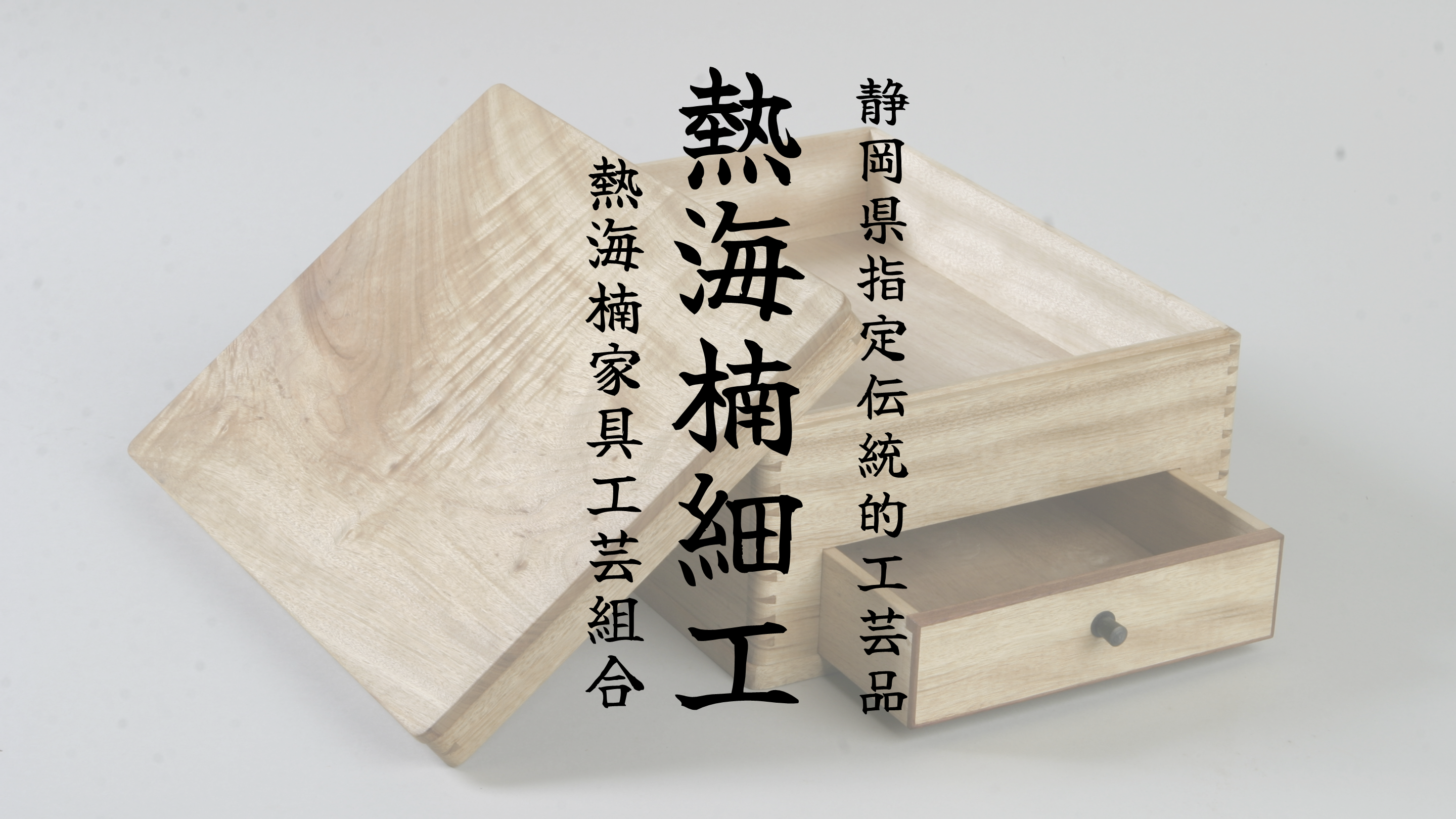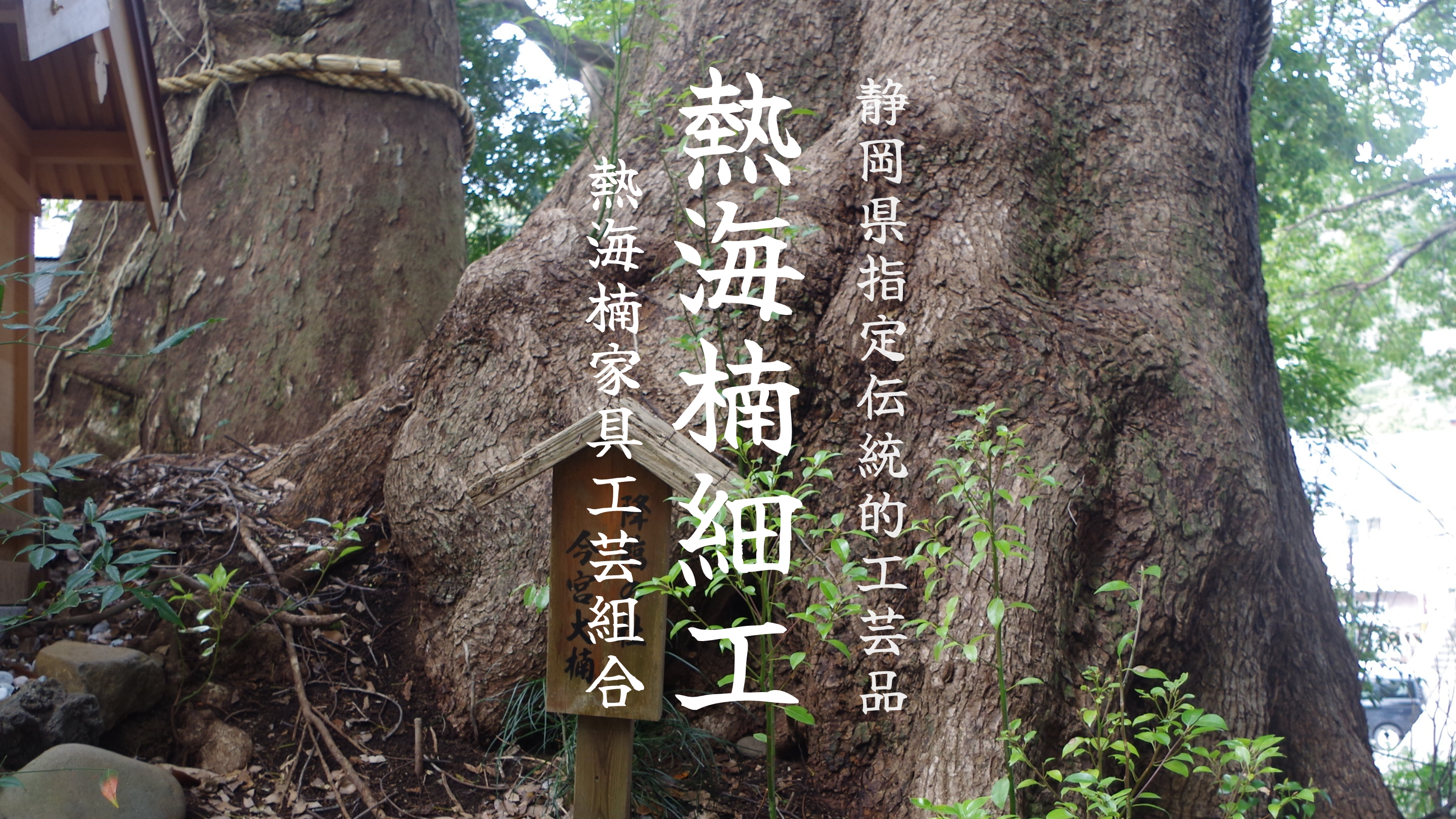 古来、遥か南の島だった伊豆半島には温暖な気候ならではの植生があります。楠-クスノキ-もその一つ。独特な杢目と樟脳という特徴を持つ楠はこの地の日用家具として使われてきました。私たちは、熱海地域を中心に伝承されてきた静岡県指定伝統的工芸品・熱海楠細工の技術を現代の生活に合わせて家具・工芸品を作り続ける熱海楠家具工芸組合です。